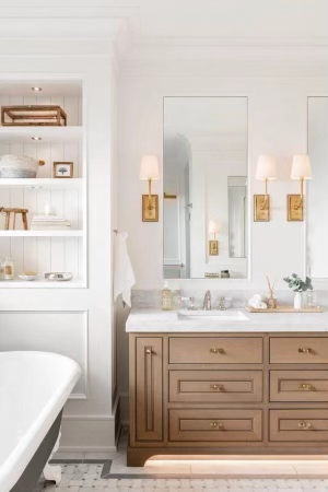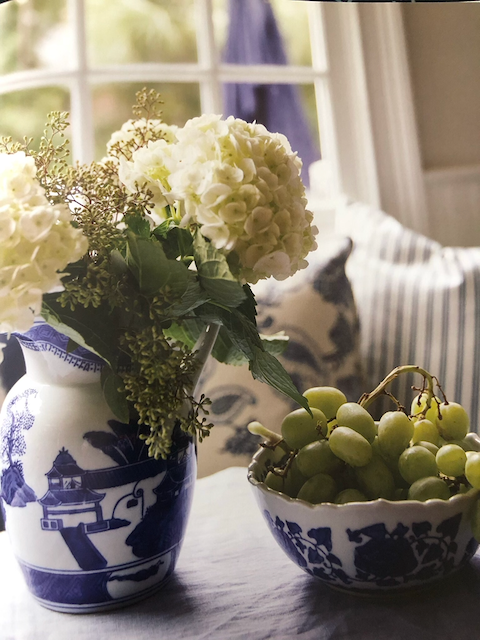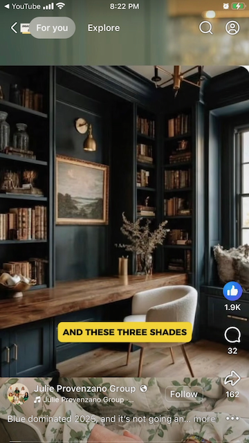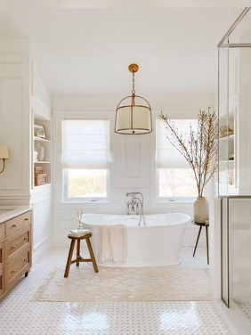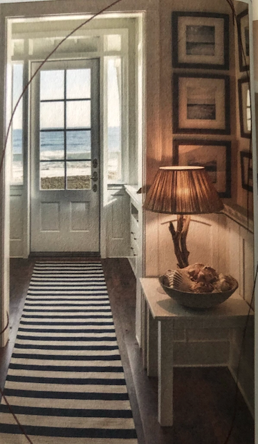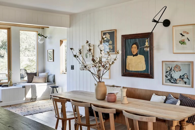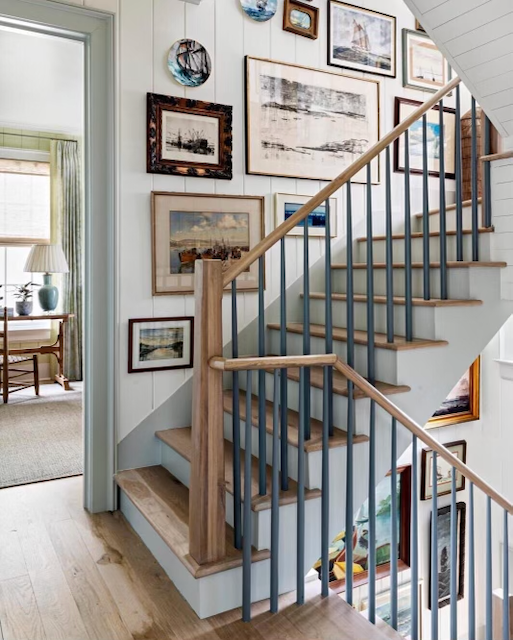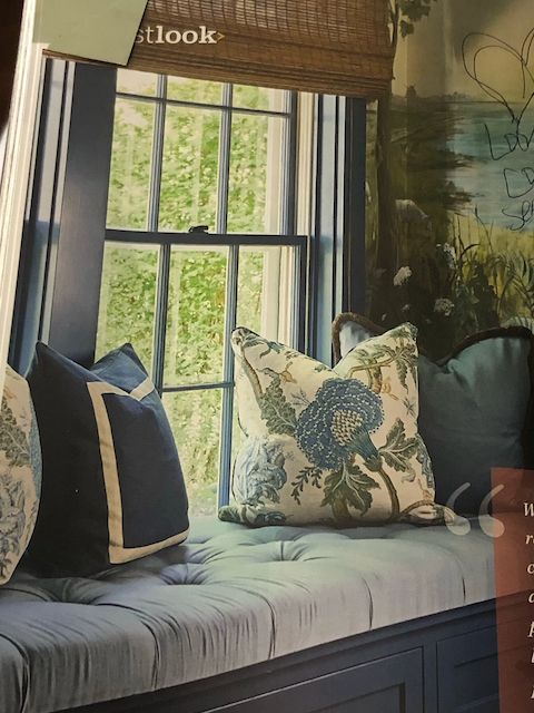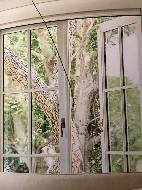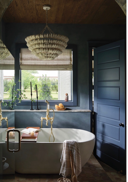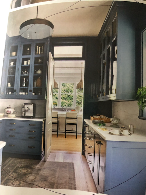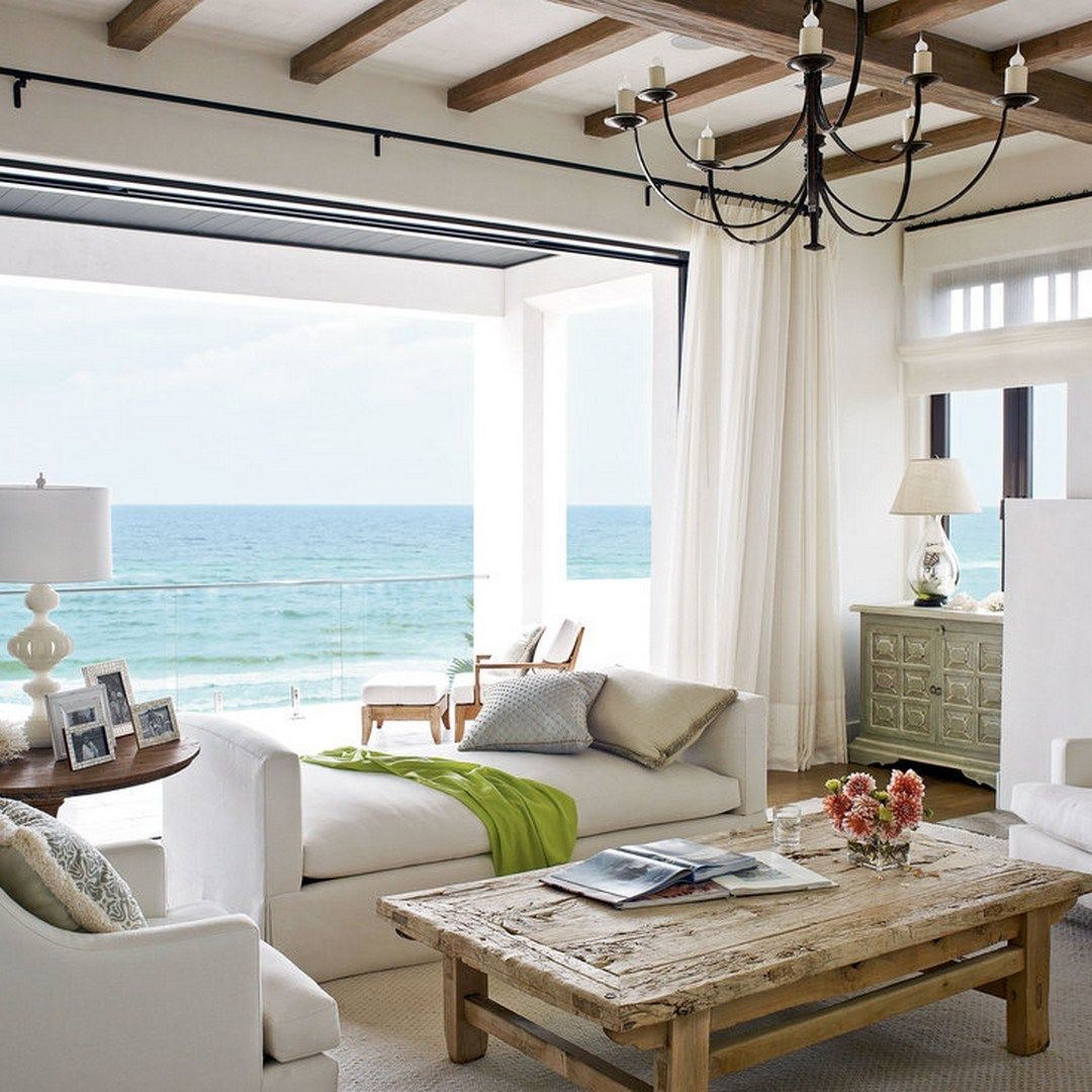 Lisa loves most everything about this picture, diagonal shiplap ceiling, beams, moldings, flooring and color...french door, warm white wall and ceiling color, fireplace style, cute chairs